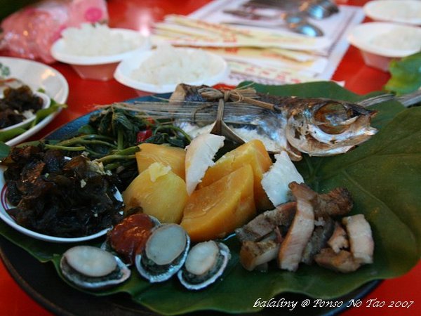 (風味餐,海草好吃、水煮地瓜芋頭則清淡香甜,飛魚料理的方式並不符合觀光客的味口,如果改良,就不是蘭嶼風了)