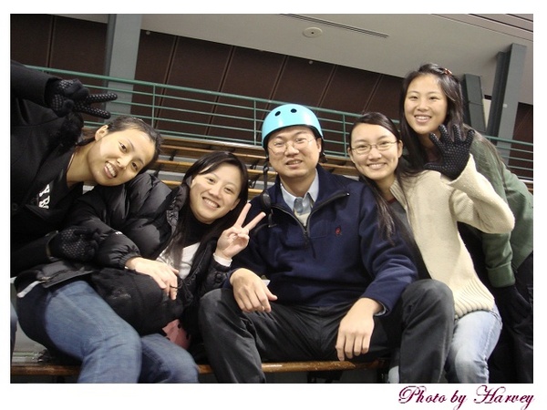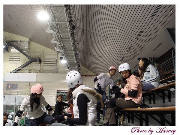 好不容易一群人穿戴好裝備(護膝、護肘、護腕、手套…當然還有溜冰鞋)