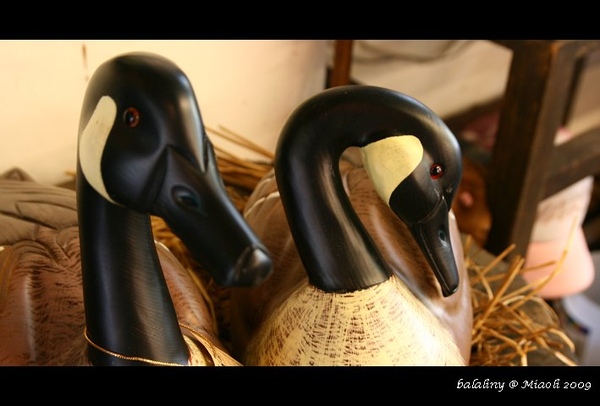 看見客廳櫥櫃裡擺放了一對彩色木鴨,