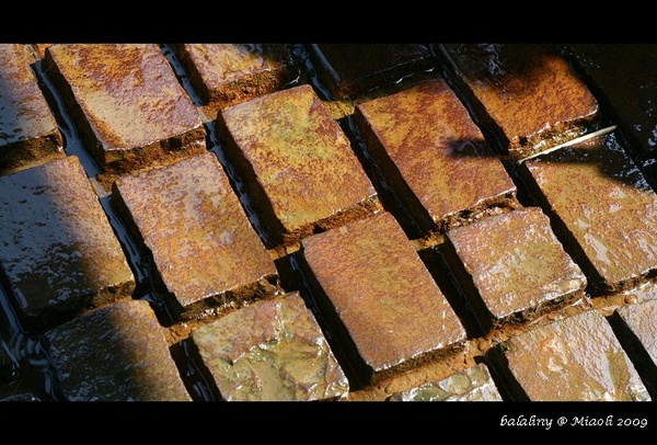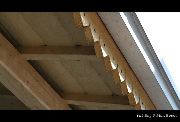 木製的窗框與毛玻璃、屋簷的一角、斑駁的柵欄,