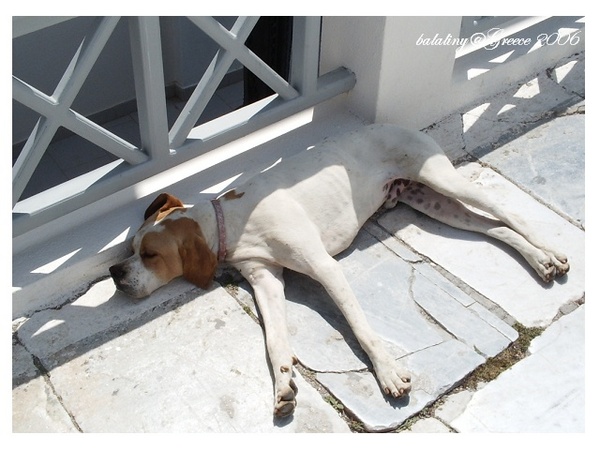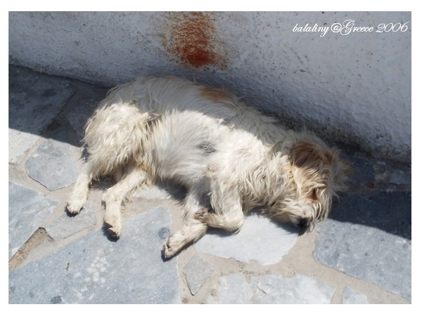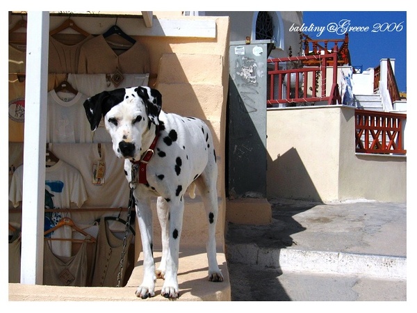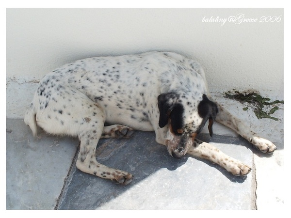 (這是在Mykonos難得遇見的藝術狗…因為覺得牠斑駁的毛色很藝術…)