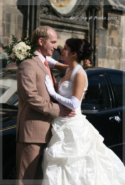 馬上意會過來,她真的是位當天結婚的新娘子呢!