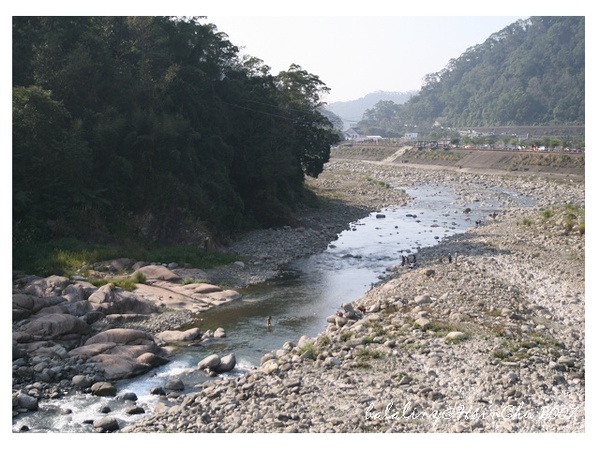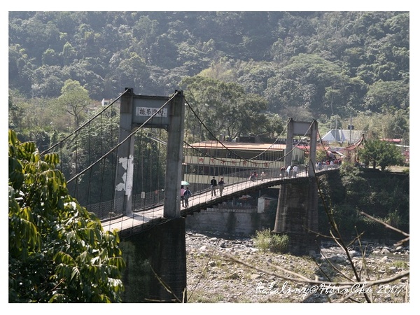 吊橋下的溪床看來是個烤肉釣魚戲水的好地方。