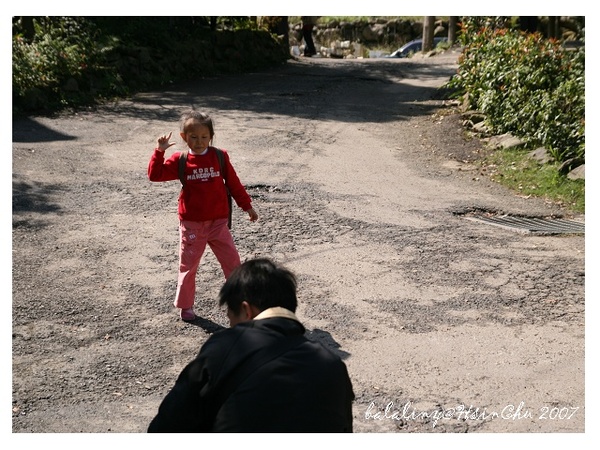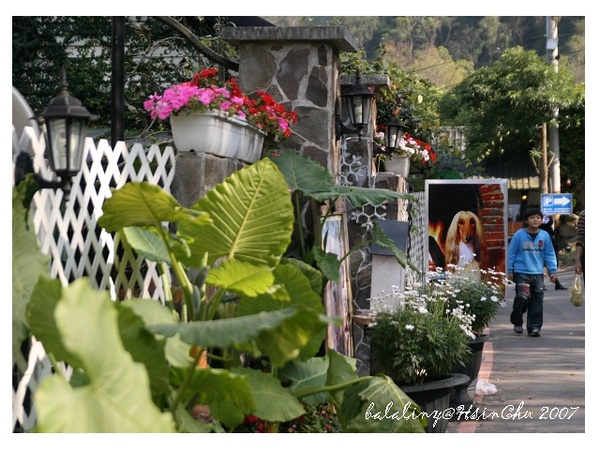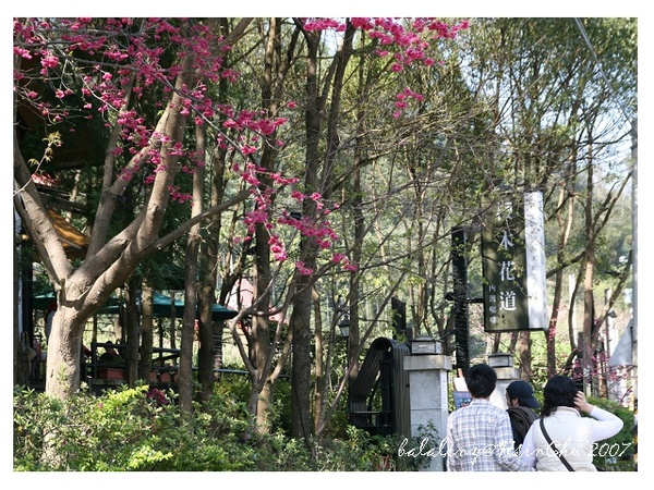 走過吊橋,人潮比起老街少了一點,而沿路二旁都可以欣賞到盛開的櫻花。經過幾家特產店之後,可以看到許多頗具新意的咖啡簡餐店,三井、流川楓、櫻木花道還有赤木與晴子…讓人以為井上雄彥在這邊發展起副業來了。有的餐廳在庭院設有露天的座位,坐在庭院的櫻花樹下喝杯咖啡,想起來就很愜意。