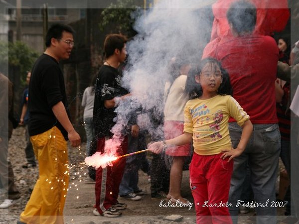 (還不到晚上,已經有人開始放起天燈及煙火)