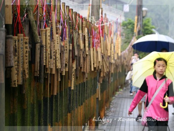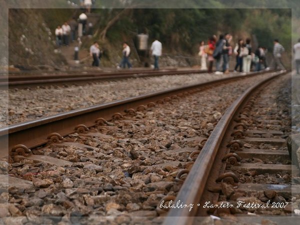 (鐵路的柵欄上掛滿許願竹筒,這是最近幾年開始流行的嗎?上回來菁桐時並沒有看到這種盛況)