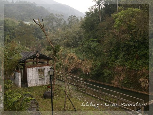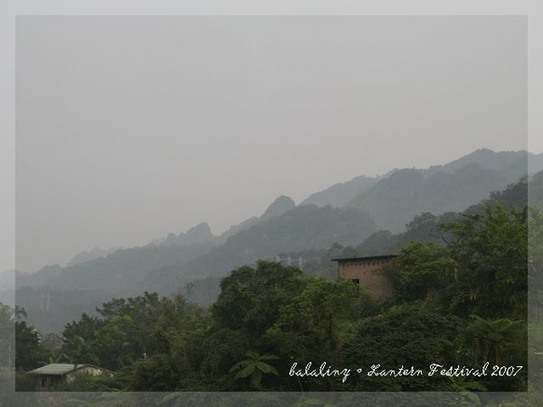 (在平菁橋上的景色,雨霧中透出遠方的山峰)