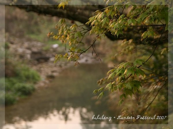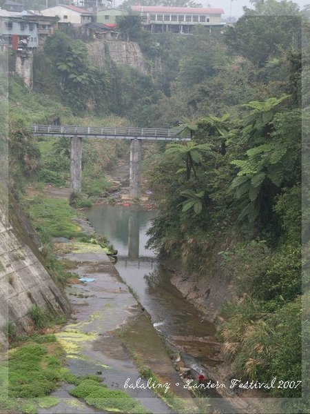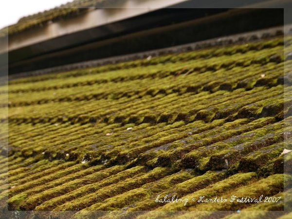 出了車站向左走,就是菁桐老街,向右走則可以到菁桐鎮上著名的景點,礦工紀念石刻。我們走過石刻旁的平菁橋,發現底下沿著溪岸有條步道,如果天氣好的話,也許可以下去玩玩水。過橋之後向右走,往前看一點點,綠陰中的民生橋,白色的影子點綴著小紅燈籠倒映在水面上,二旁岸上的樹叢頂露出舖著黑瓦的屋頂,那邊即是日式建築群。這些日式建築曾是台陽礦業提供給員工的宿舍,取名為「皇宮」、「東京」、「北海道」,現在都已改為民宿經營,從民生橋旁的斜坡走上去就可以到達,但我們並沒有進去造訪,因為光在民生橋上欣賞小溪二旁的景緻就消磨掉許多時間,就當作再次前來的理由吧!