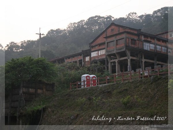 (紅磚黑瓦的洗煤場…那二座流動廁所還真醒目…從這個角度很難將它們避開…)